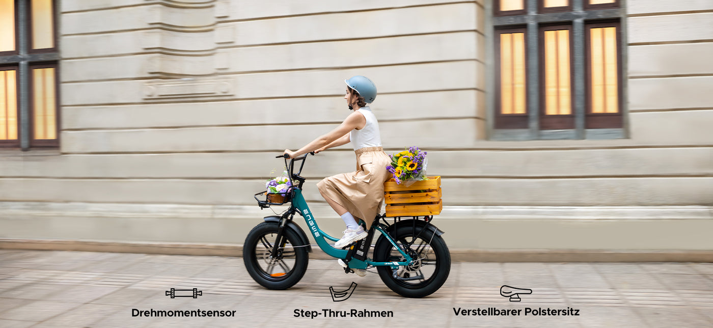 250 W, 126 km, Power-Boost, Drehmomentsensor, Step-Thru-E-Bike, 25 km/h