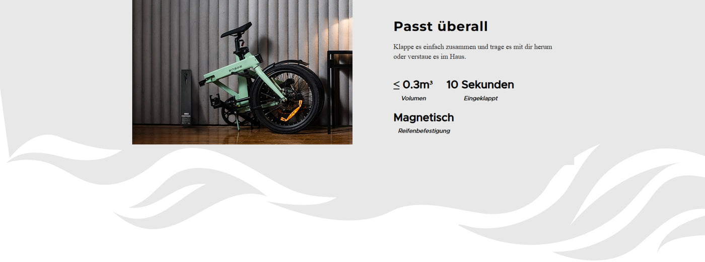 Falten Sie Ihr E-Bike in 3 einfachen Schritten innerhalb von 10 Sekunden. Dank seines ultraleichten Designs lässt es sich problemlos in öffentlichen Verkehrsmitteln mitnehmen, Treppen hinaufsteigen oder im Auto verstauen