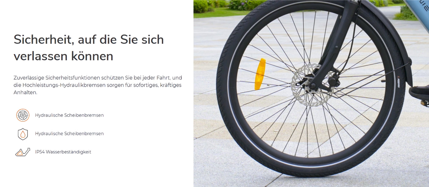 Das gesamte E-Bike ist wasserbeständig – ideal bei Regen oder nassem Untergrund.