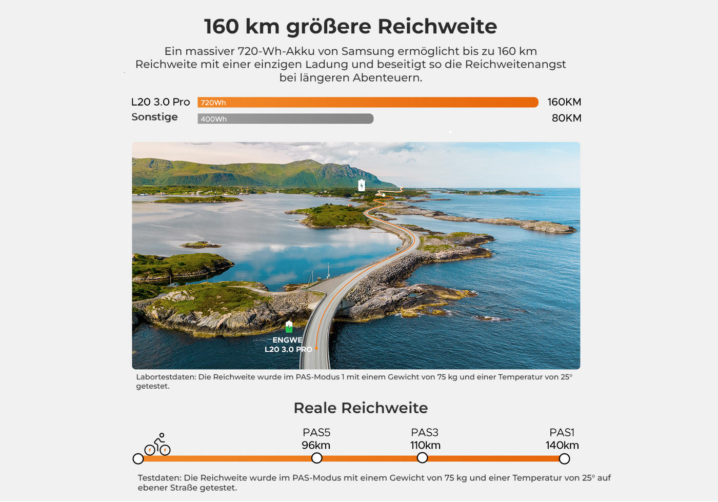 160 km (vollständig geladen)
