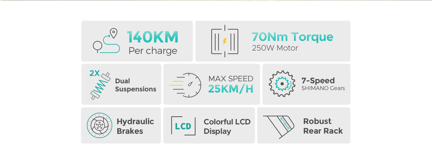 25 km/h (tatsächliche Geschwindigkeit kann je nach Fahrergewicht und Straßenbedingungen variieren)