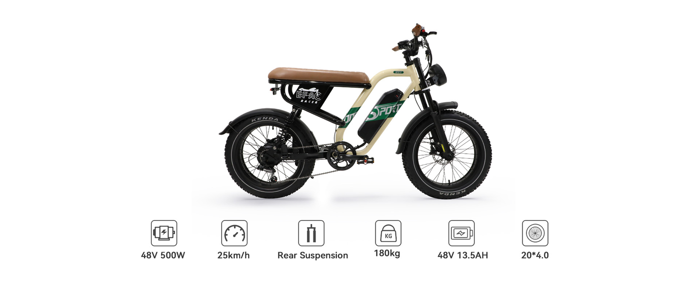 Das W66 E-Bike im Moped-Stil verfügt über ein vollgefedertes System mit einer Vorderradgabel und einem 30 mm Hinterrad-Stoßdämpfer, die für eine sanfte und komfortable Fahrt auf jedem Untergrund sorgen. Die Vorderradgabel dämpft Stöße auf unebenen Straßen, während der hintere Stoßdämpfer die Stabilität erhöht – ideal für den Stadtverkehr und Offroad-Strecken.